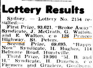 What’s clear is that this now-residential address on Princes Highway at St Peters was once a newsagent. What isn’t clear (but will be shortly) is that in 1950, this newagent sold the first-prize winning lotto ticket for Lottery No. 2154.