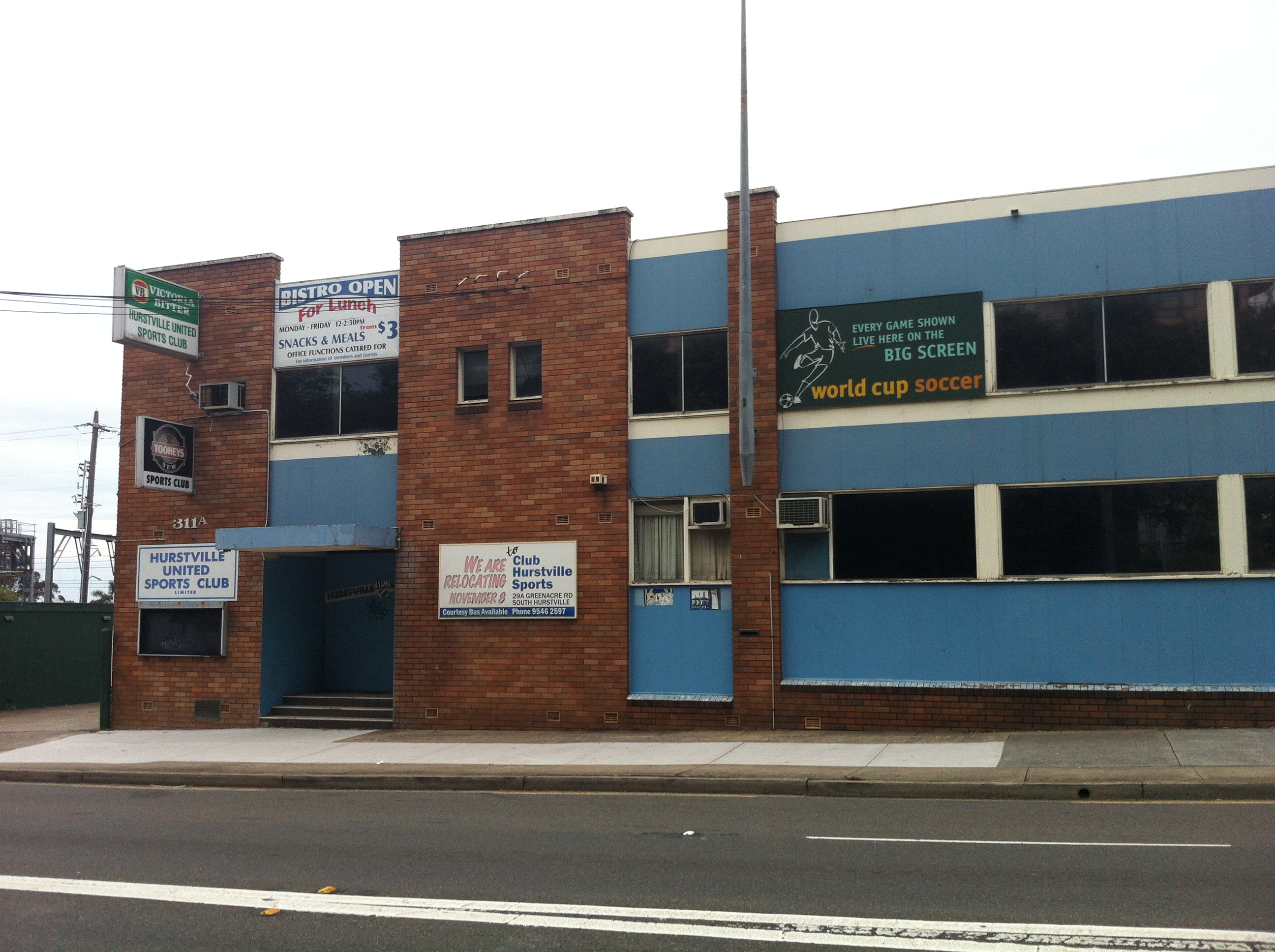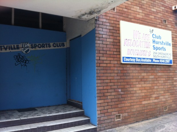 Unfortunately for fans of empty buildings, the outside is as close a look as we’re gonna get. The Hurstville United Sports Club has moved, leaving the shell of its former home behind as it establishes a new pokie storage room at South Hurstville under the shorter, trendier and more abstract name ‘Club Hurstville Sports’. One can only imagine the third iteration will be titled ‘Hurstclub Sportsville’.