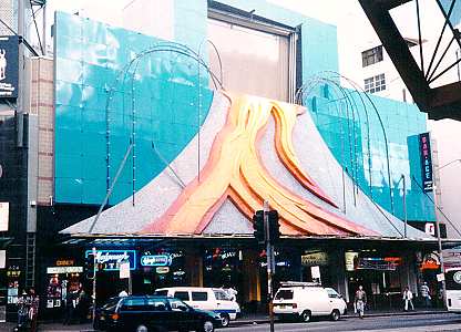 Someone in the Church of Scientology saw an opportunity to educate the people of George Street in the ways of Xenu et. al., and in mid-1996 a giant illuminated volcano facade was erected above Galaxy World, with a giant video screen at the peak. The screen played commercials for Scientology founder L. Ron Hubbard’s 1950 book Dianetics over and over and over as smoke burst from the volcano, while testing centre was established nearby so that anyone interested in the ad could have their situation evaluated by the experts. What had been originally intended was that the screen would be directly used by the Church of Scientology to advertise the religion/cult, but after that proposal was denied by the Sydney City Council, a compromise was reached in the form of the Dianetics ads. Celebrity Scientologists Kate Ceberano and Nancy Cartwright appeared at the unveiling, which was forced inside due to the thunderstorm.