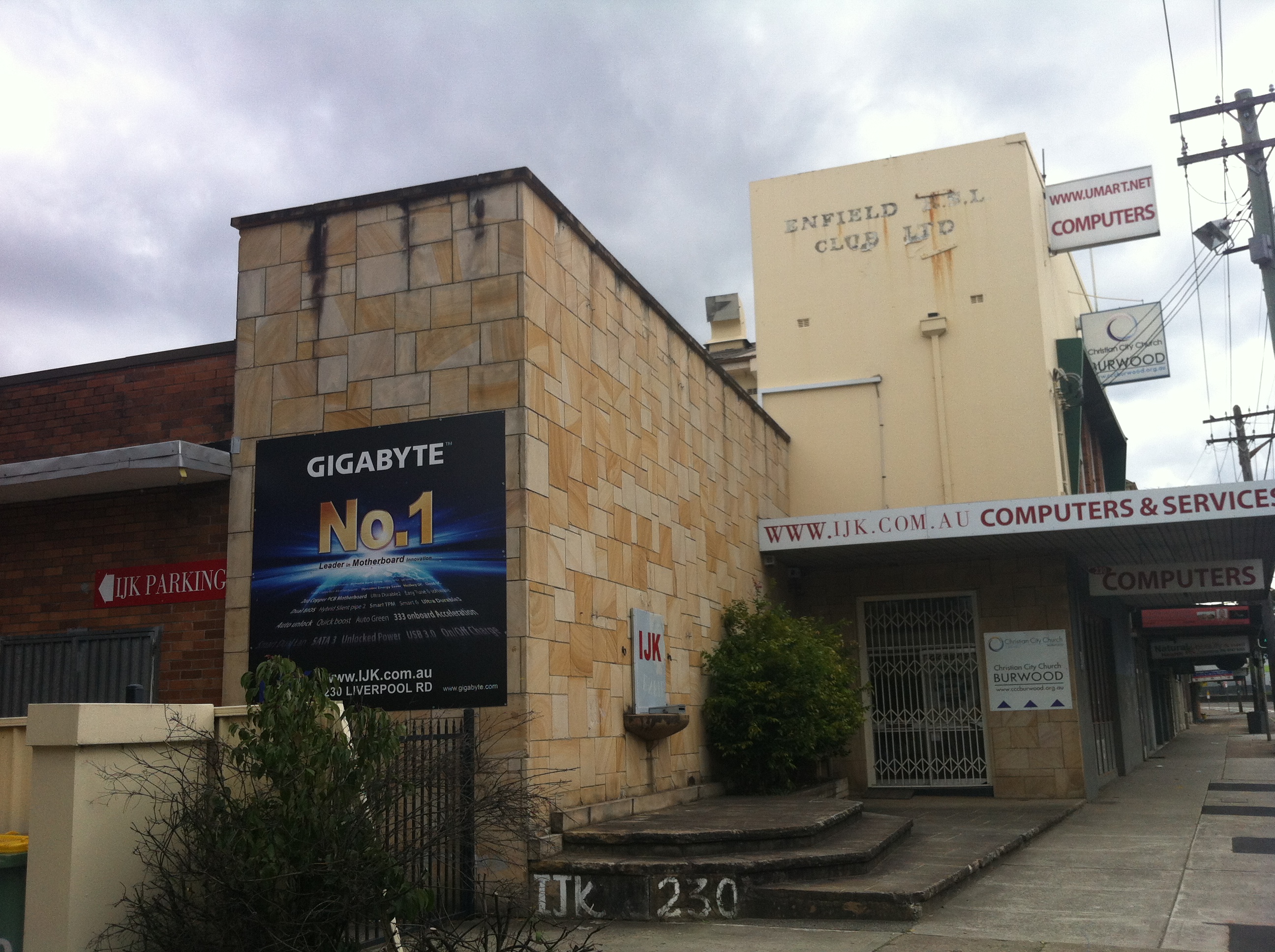 IJK Computers have the right idea. By replacing Enfield RSL with a computer shop, they’ve guaranteed that oldsters looking for the former establishment won’t dare to come inside. It’s like replacing McDonald’s with a gym. Confusing matters is the Christian City Church, which also resides inside (or C3 to their friends, as per their mind-blowing website).