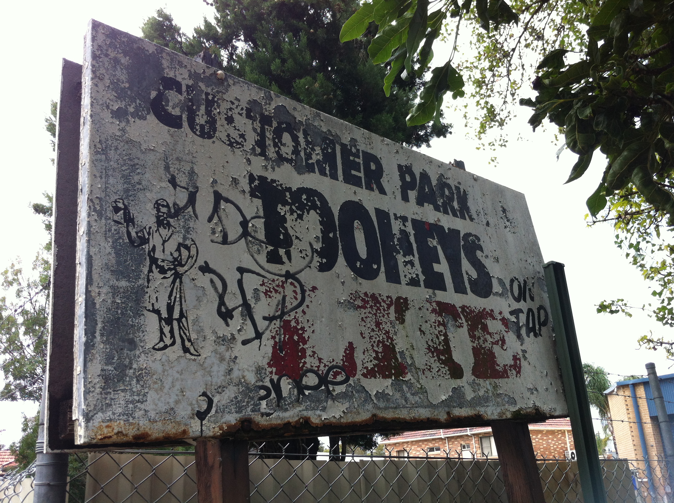 Remarkably well-preserved, the sign advertises Tooheys 2.2, which was an attempt by Tooheys to introduce a light beer to their otherwise heavy range in the late 1980s.
