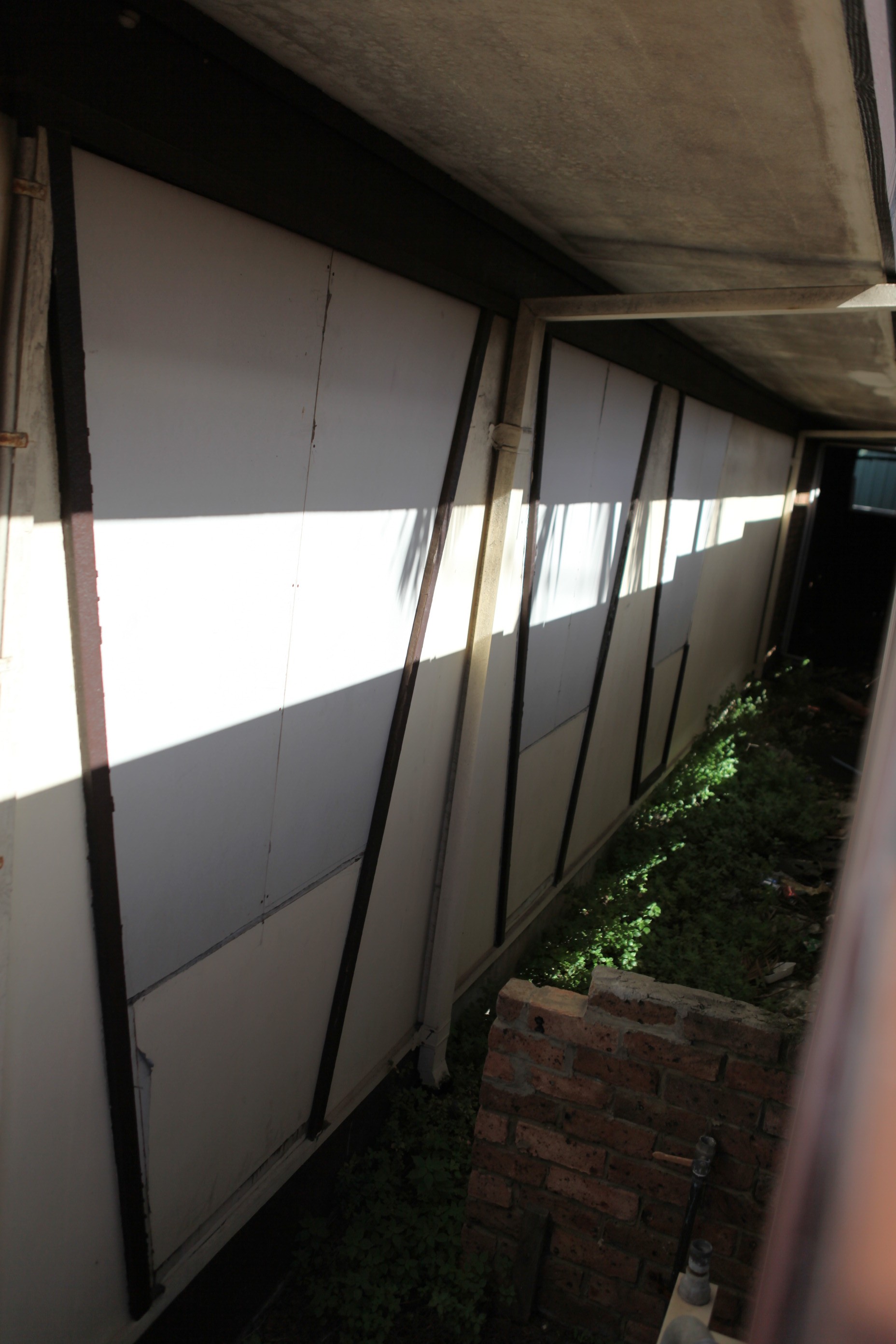 Oh, just one more thing. Can I have a look around the other side, between the building and the fence?