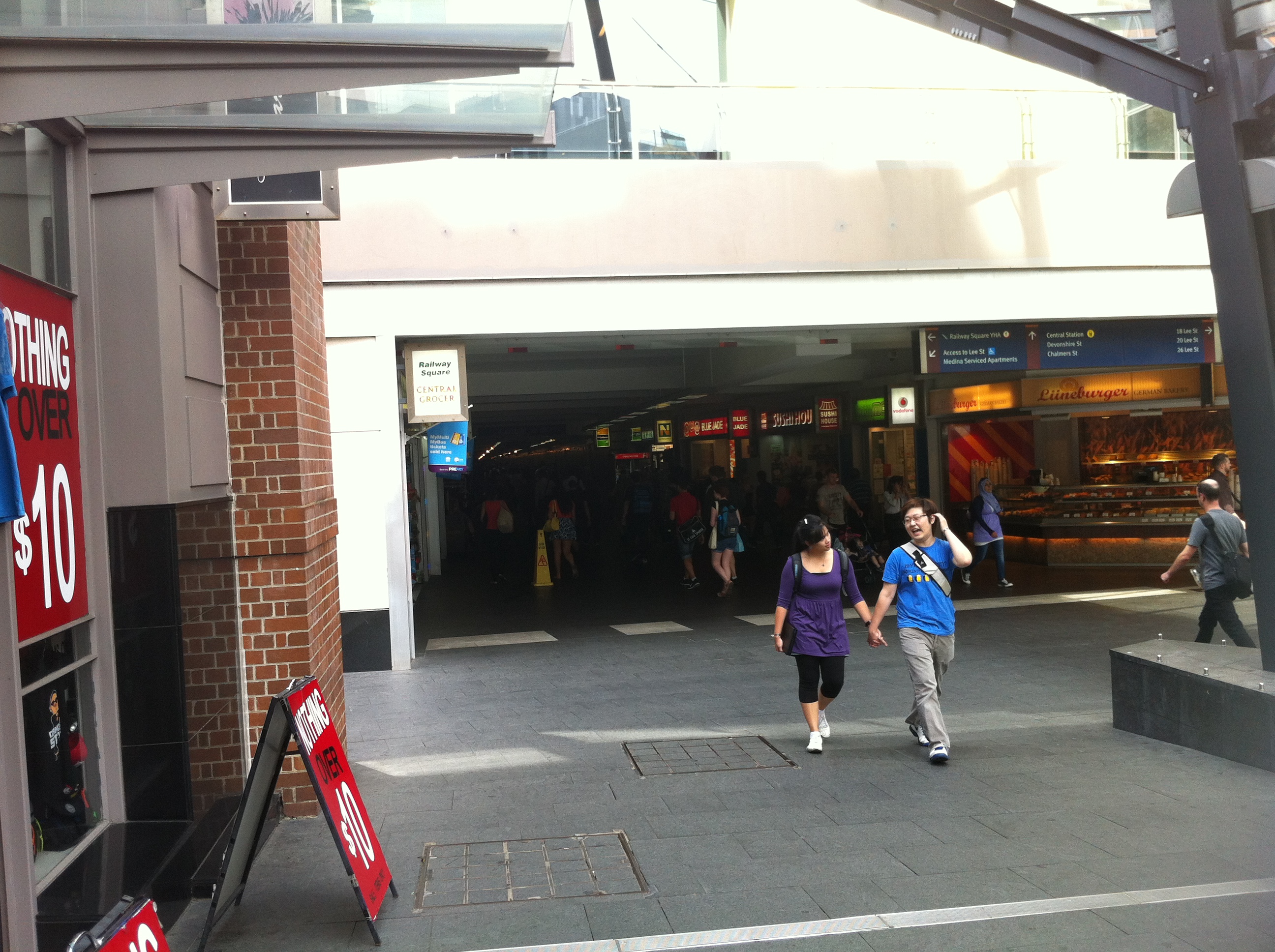 Devonshire Street Tunnel, once Devonshire Street, runs directly underneath the path once carved between the cemetery and Sydney Station, depositing Surry Hills pedestrians into Railway Square amid el-cheapo bargain shops, youth hostels and fast food joints.