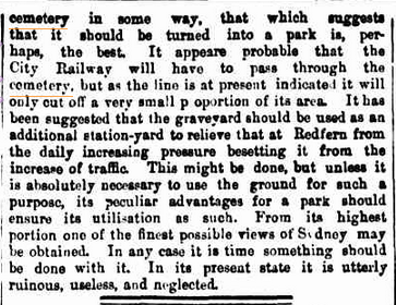 Finally, here’s a fascinating account of a visit to Devonshire Street Cemetery just as its demolition was beginning. It originally appeared in the Clarence and Richmond Examiner, October 1 1901.