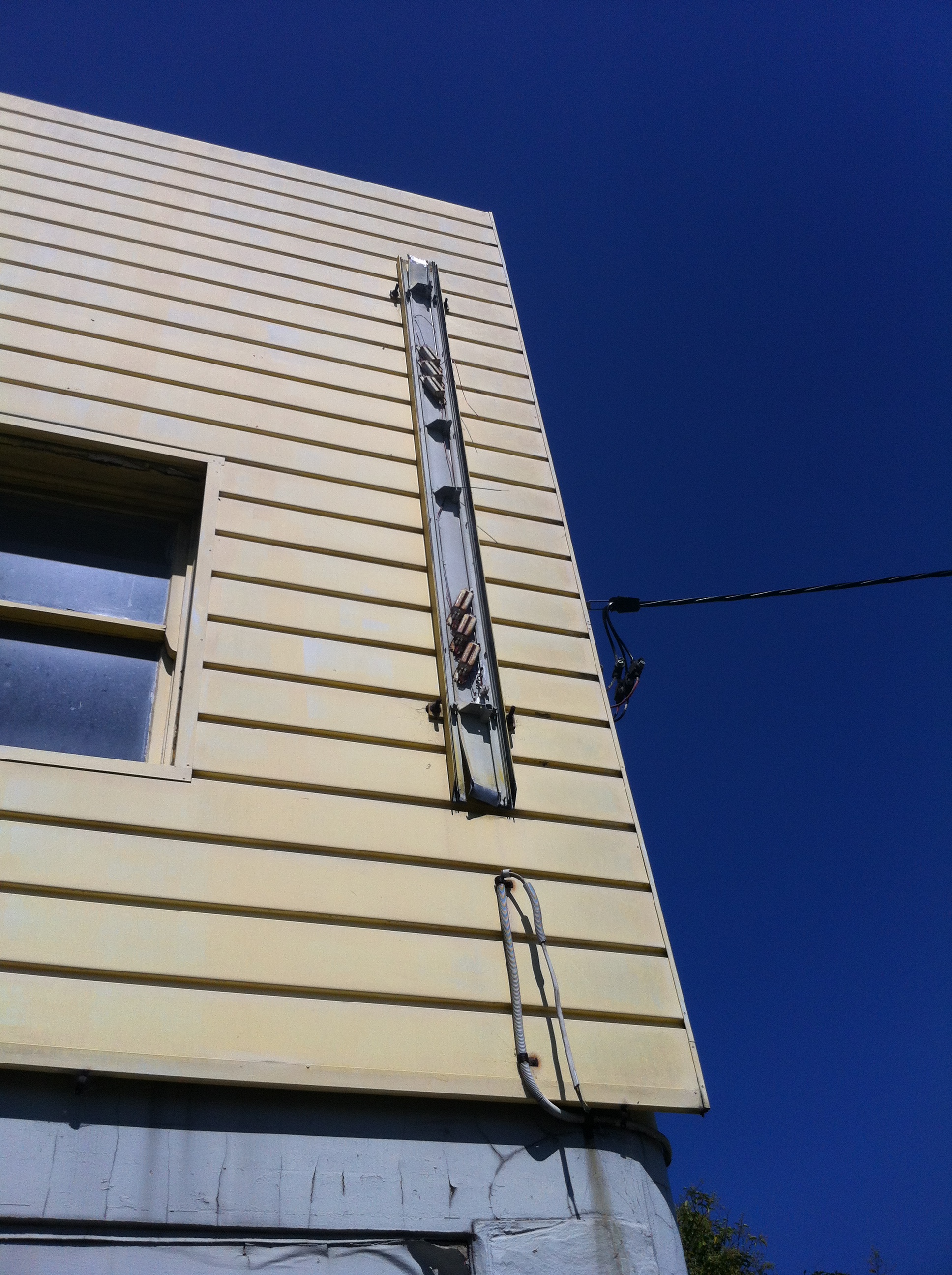 Buildings like this have a way of opening up to you after awhile. In this case, it was the abundance of electronic doodads covering its face like piercings that gave it away. From this former sign…