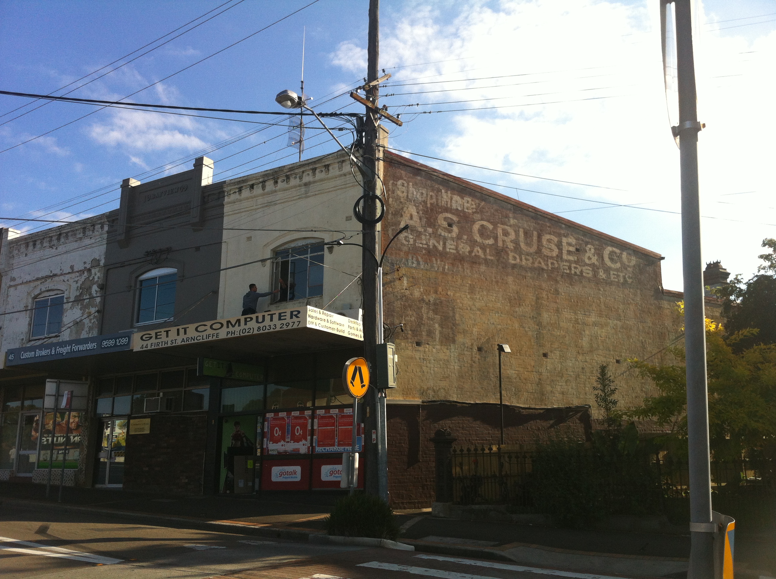A pioneer of shameless self-promotion, A. S. Cruse and his company of drapers made etcetera a reality for shoppers at this Arncliffe location. The recent removal of a large tree has made it once again possible to see this old signage, the likes of which I can’t really see the confusingly named Get It Computer ever putting up.