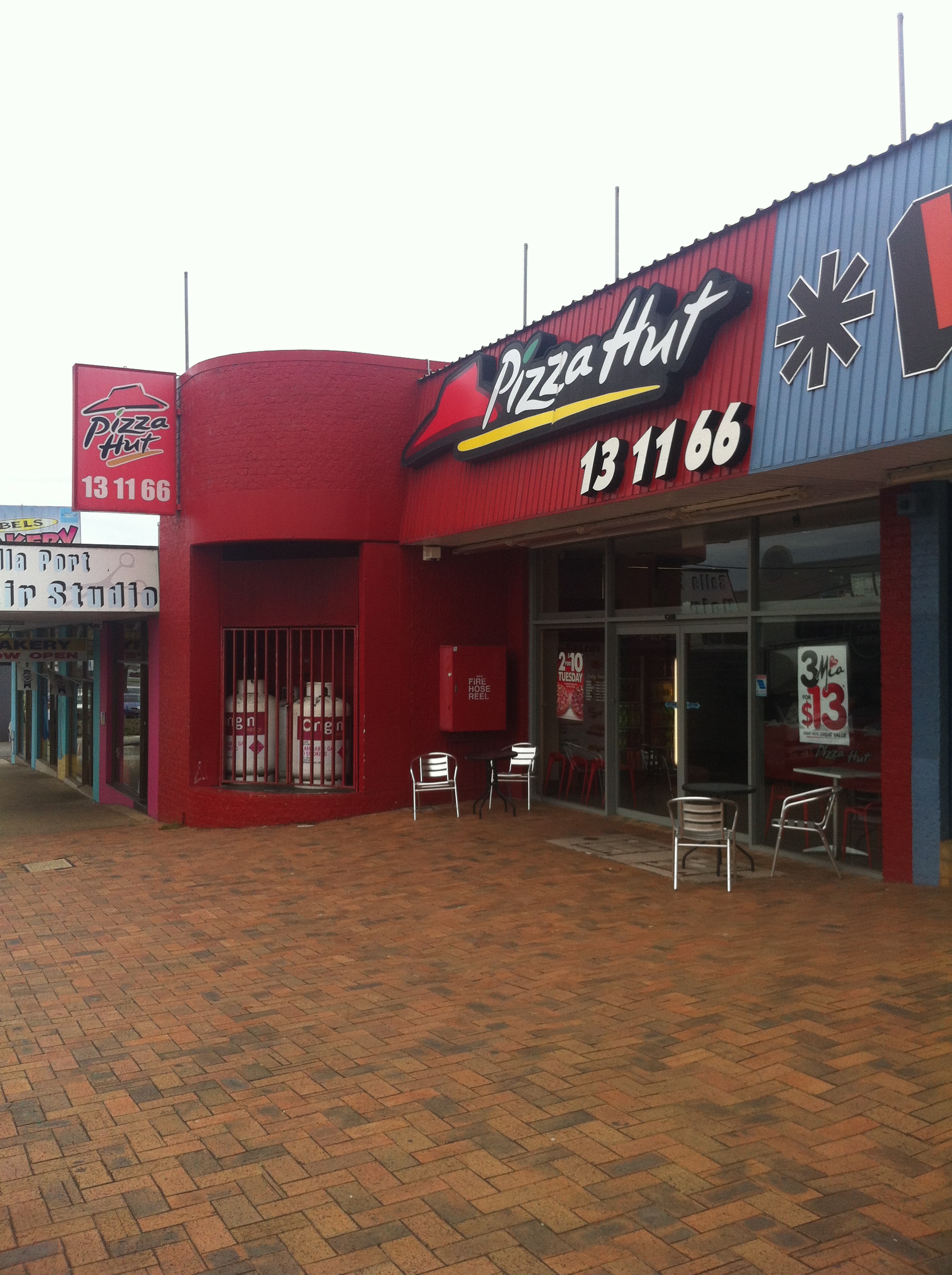 It’s not all bad news for Port Macquarians jonesing for a fix of crusts thick, thin or stuffed, however: they’re still makin’ it great at this downgraded Hut down the road. For those who knew the dine-in Pizza Hut experience biblically, the above picture is a sad sight, and for everyone else, it’s a shocking reminder that there’s a Video Ezy still in operation.