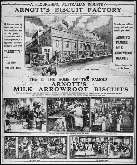 The first Arnott’s Biscuits factory opened at Forest Lodge in 1894, but when demand created the need for a larger factory, Homebush was chosen as the best location because of its proximity to the rail system. Company founder William Arnott had made the decision to move the factory closer to Sydney, but died in 1901, before he could see his dream realised. Seen at the time as a mistake on Arnott’s part due to Homebush’s then-long distance from the city, the factory eventually became the largest of its kind in the Southern Hemisphere. In fact, the Arnott’s factory was one of the foundations of economic prosperity in the growing residential suburb of Homebush in those days; there were few families in the suburb that didn’t work for Arnott’s.