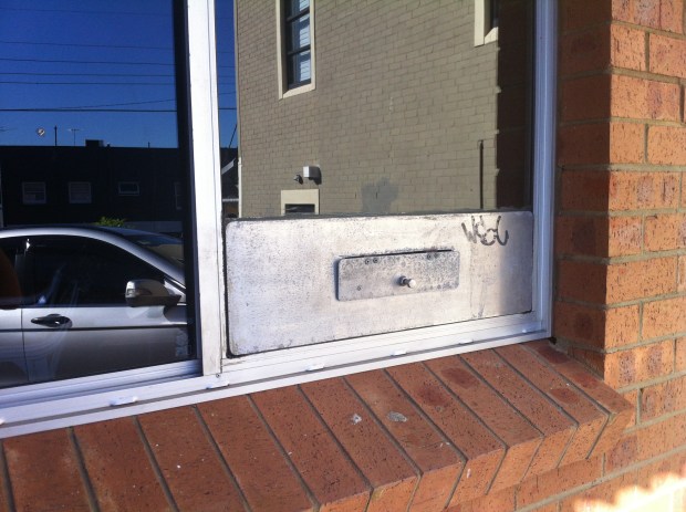 Here’s the after hours return chute the tardy denizens of Oatley would have used to return videos after the shop had closed for the day. Or, in some cases, never used at all: