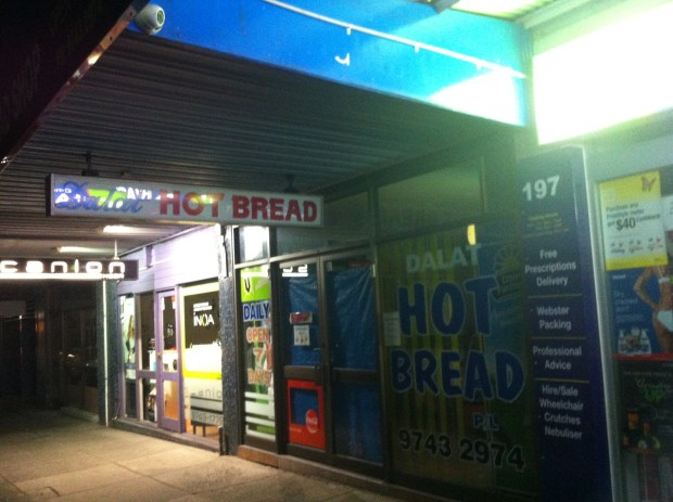 Here’s a fun instance of ‘street musical chairs’. Exhibit A: Dalat Hot Bread in Concord West. An ordinary shop with an ordinary awning…