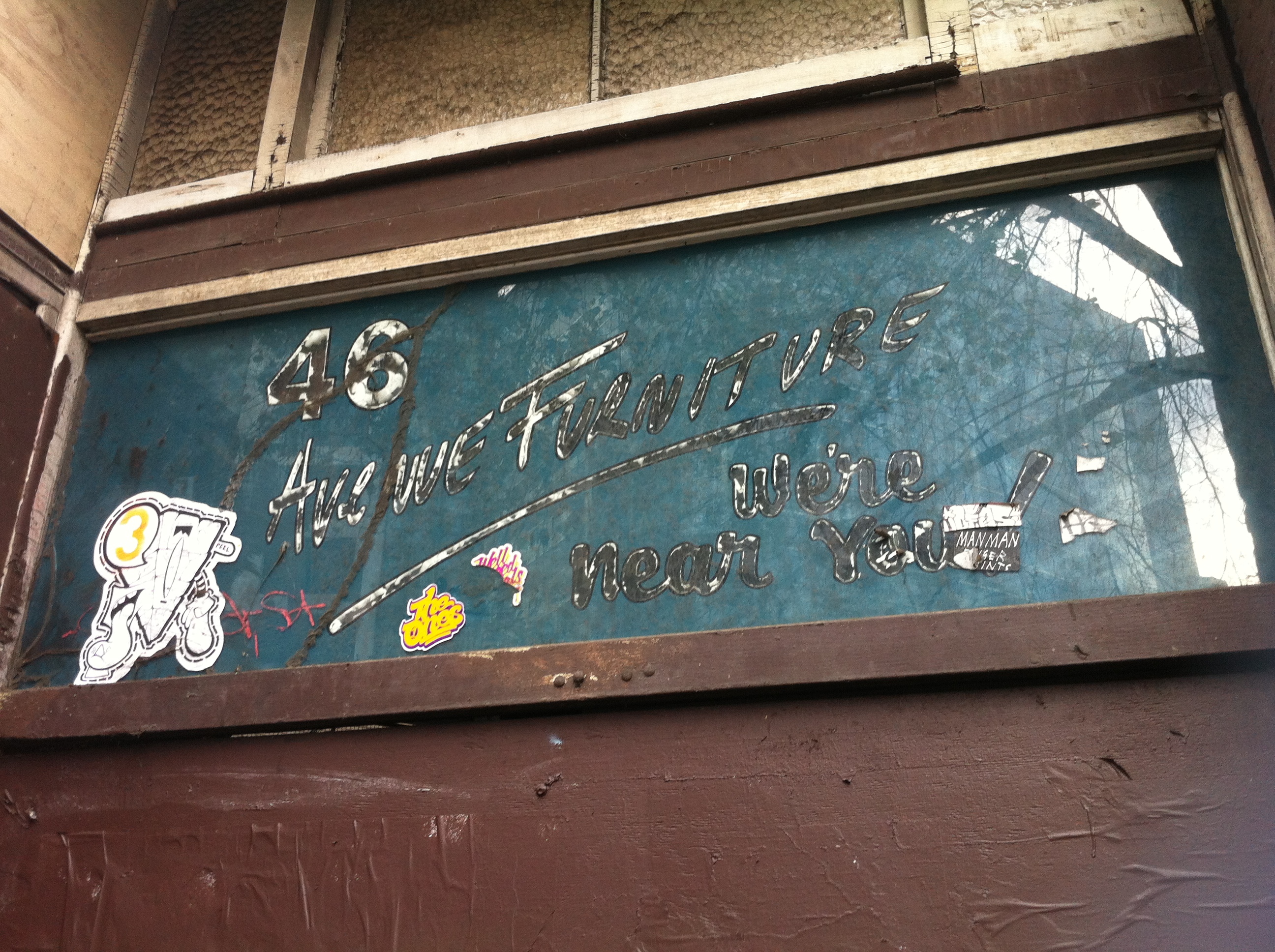ATHENIAN UPDATE: As reader Luke says, this location was once the Athena Greek nightclub/Restaurant. The only remnant of this today is the ironwork affixed over the east window:
