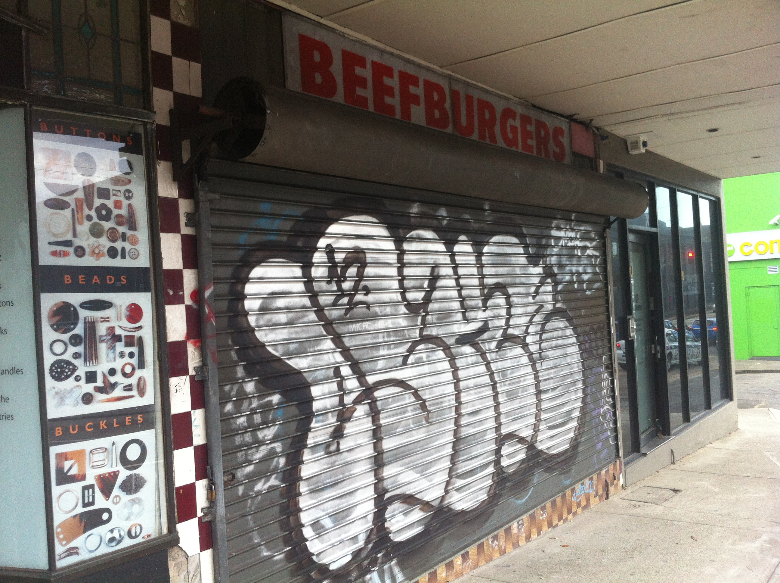 Take away shops on busy roads like this tend to die off when surrounding businesses start to close down, because it’s not like motorists can easily stop and run in for beefburger variety #6,546,500. Parramatta Road anywhere is not really the right environment for this kind of place, but that doesn’t deter them. Nor, clearly, does it deter the button shop next door. That’ll work.