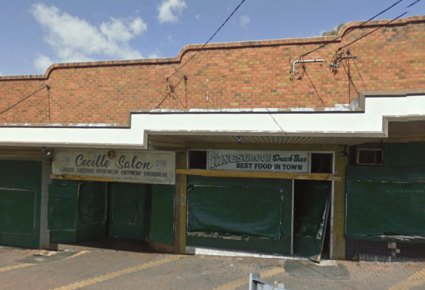 We have the Cecille Salon, the Kingsgrove Snack Bar (best food in town!), and finally and most intriguingly, FJ’s Pizza. Take a closer look there at FJ’s…who’s that holding the pizza?